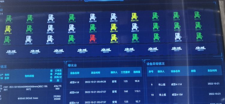 在成型車間數字化看板前,市長駐足了解看板所顯示的幾項內容,重點關注數字化創建后給公司帶來的績效情況。